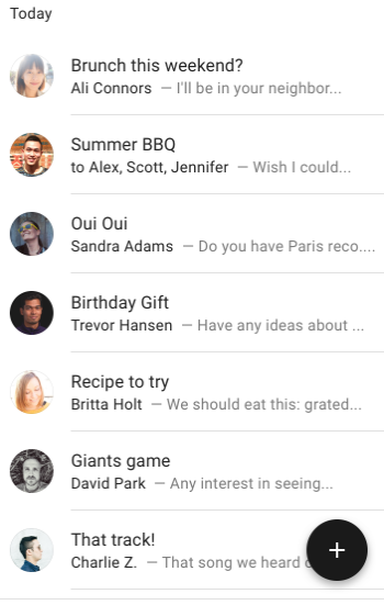 Scaffold( floatingActionButton = { FloatingActionButton(onClick = { /* ... */ }) { /* FAB content */ } } ) { // Screen content }새 이메일 작성 플로팅 작업 버튼
