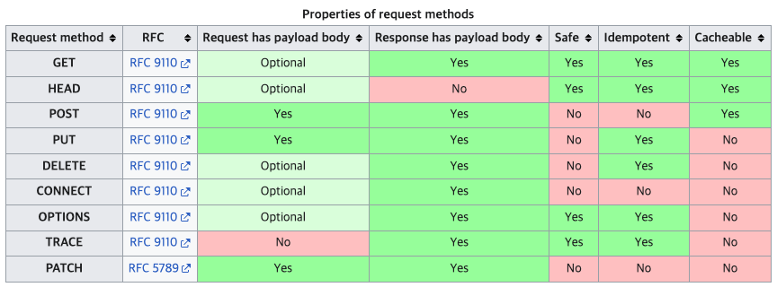 - HTTP 메서드의 멱등은 리소스에 수정이 발생해도 메서드를 여러 번 실행한 결과가 한 번 실행한 결과와 같다면 만족하는 속성호출을 실행한 결과가 의미하는 것이 응답 상태 코드가 아닌 서버의 상태라는 점도 유의한다.